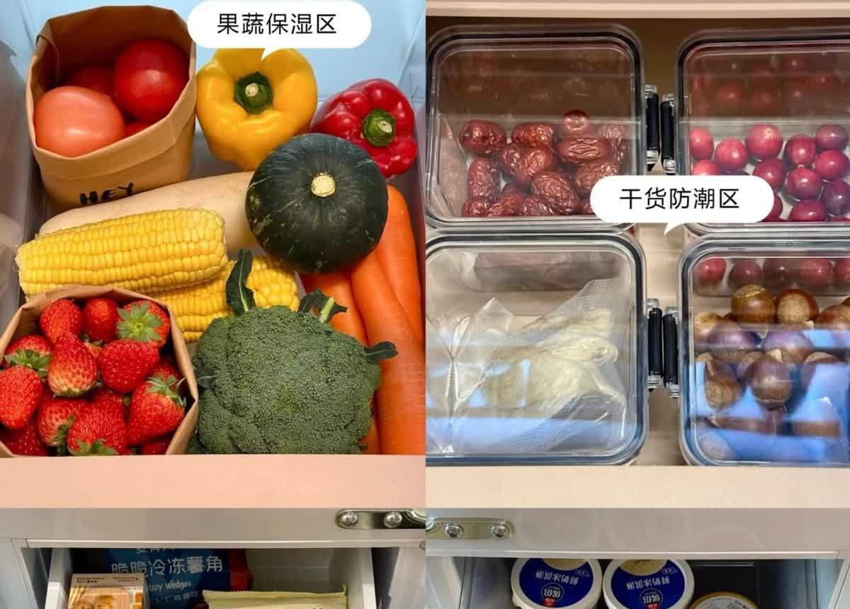 可见,内部分区是非常细致的,而且储存的东西也更细致。也正是基于内部独立分区,和分区之间的分隔,会使储存的食物效果更好。