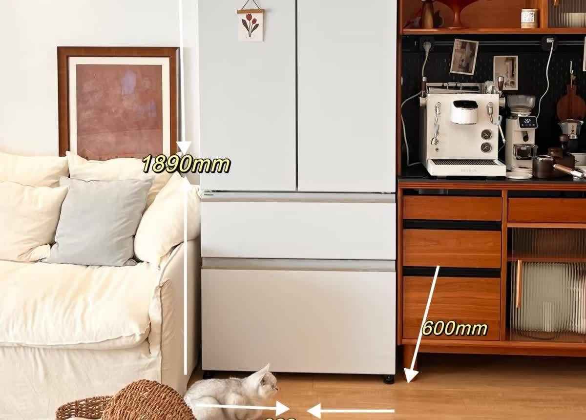 看看法式多开门冰箱,即使是同容量,体积并没有那么大。例如,同为500升的双开门冰箱要比双开门冰箱大一圈。